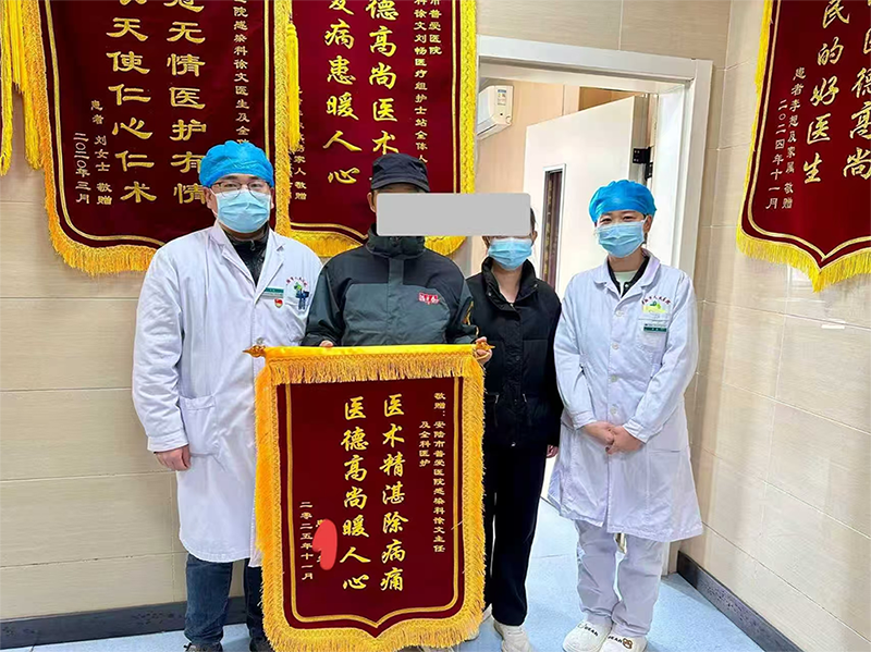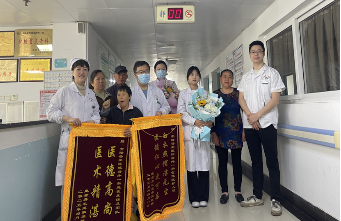 近日,患有唐氏综合征的51岁患者蒋某在安陆市普爱医院普外一科医护团队的精心治疗下康复出院。家属带着鲜花和锦旗来到科室,向全体医护人员表达诚挚谢意。这场跨越半个月的生命保卫战,彰显了多学科协作的力量与医护人员的责任担当。