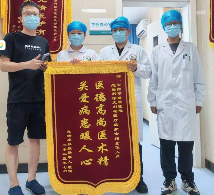 近日,安陆市普爱医院感染科收到一面饱含深情的锦旗,上书“医德高医术精,关爱病患暖人心”。这面锦旗承载着患者李先生及家属对科室全体医护人员精心救治与无微不至护理的由衷感激。