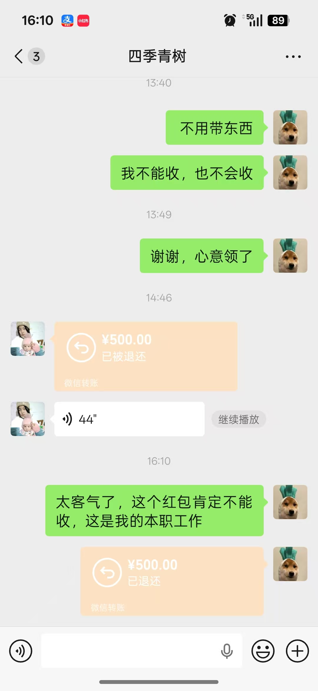 患者心怀感激,准备送上礼品表达谢意,被孙磊当场婉拒。随后,患者又通过微信转账500元红包,再次被他坚决退还。