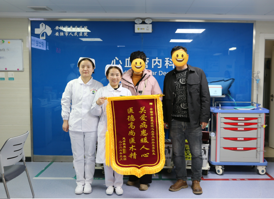 近日,安陆市普爱医院心血管内科上演了温馨一幕:患者家属将一面写有“医德高尚医术精,关爱病患暖人心”的锦旗送到医生孙东赤手中,感谢全体心血管内科医护人员对老人的精心治疗和无微不至的关怀。