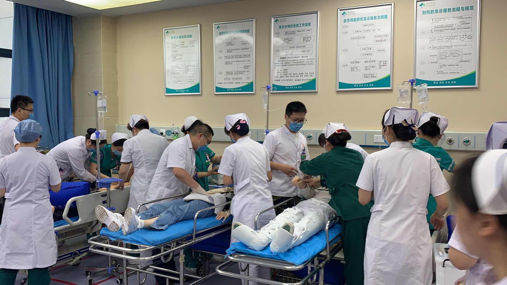 为更好地应对大型突发事件和急危重病人的抢救,切实为安陆人民的健康保驾护航,5月28日下午,我院护理部组织了一场紧张而生动的“大型车祸伤”紧急护理人力资源调配演练。本次活动以急诊科为主战场,多个临床科室协同抢救,并邀请质控科、医务科、公卫科、院感办、人事科、宣传科、保卫科等职能科室相关负责人参加观摩和指导。