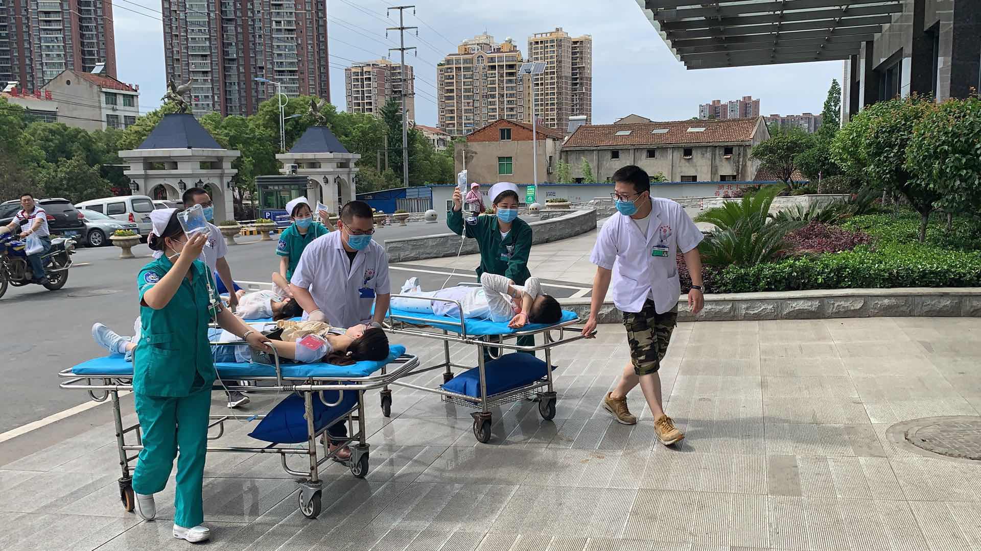 经初步评估后,发现有4名危重伤员,其余8名伤员都有不同程度的受伤,大部分患者有皮肤擦伤、局部疼痛、软组织损伤。其中有1名重型颅脑损伤患者伤势较重,入院后突发心脏骤停。医护人员立即进行心肺复苏,复苏成功后经神经外科医师会诊并迅速转入手术室进行后续治疗。
