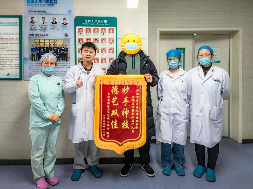 12月23日,黄冈市蕲春县的卫先生驱车3小时来到安陆普爱医院,向ICU医护人员送上“妙手神技 德艺双佳”的锦旗,表达对医护人员全力抢救挽回自己生命的感激之情。