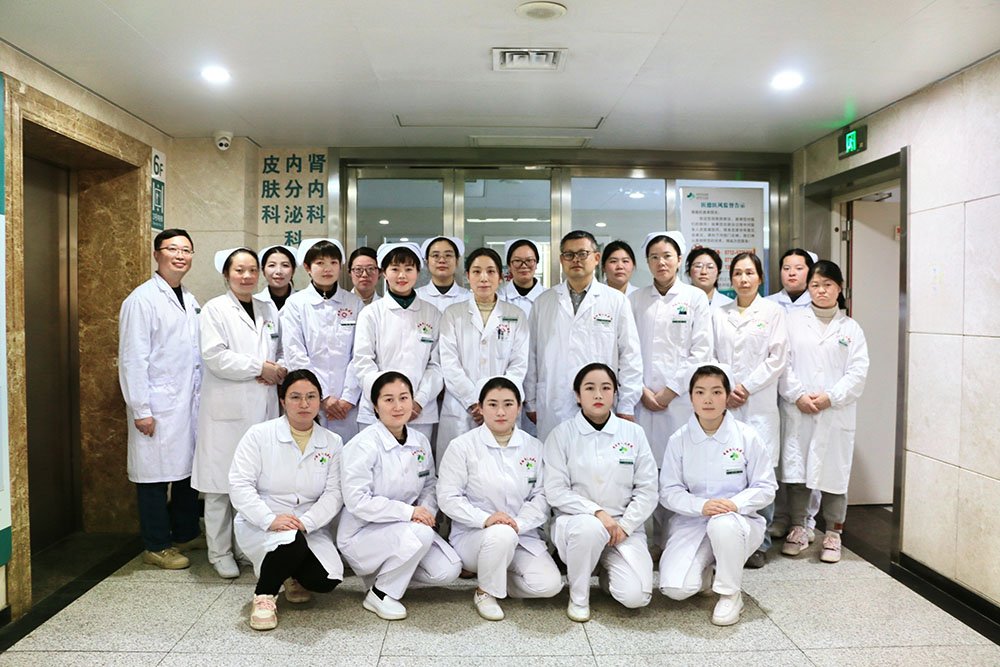 肾病学科是孝感市临床重点专科,设有门诊部、住院部和血液透析室。住院部病区开放床位45张,其中配备危重病监护病房1间,腹膜透析室1间、血管通路手术操作室1间、手术操作台1张。血液透析室拥有57台透析机、连续性体外净化治疗机6台、双极反渗透直供水机2台、集中供液系统1套、床边彩超机1台。目前有300多名尿毒症患者在血液透析室进行维持性血液透析治疗,50余名尿毒症患者进行腹膜透析治疗,每年收治患者约1800人次。