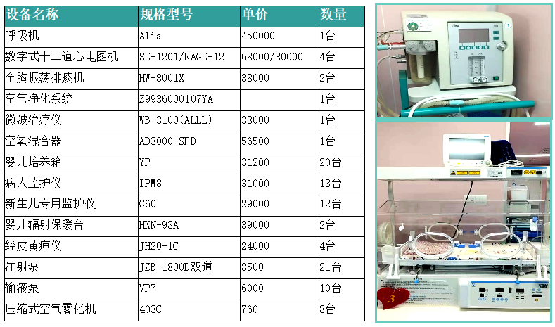 新生儿监护室开设床位20张,可进行床边心电、呼吸、氧饱和度、血压等检测,为新生儿生命体征提供依据。拥有辐射式抢救台、微量血糖分析仪、经皮胆红素测定仪、低压吸引装置、多台微量注射泵、数字式心电图机等先进医疗抢救设备,能为危重新生儿提供科学的救治与监护。