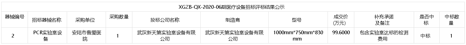 安陆市普爱医院PCR实验室设备招标采购中标结果公告