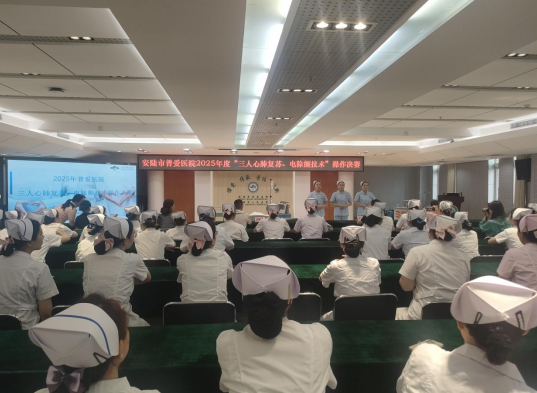 2025年5月8日,在第114个护士节来临之际,安陆市普爱医院护理部成功举办《三人心肺复苏、电除颤技术》操作决赛暨护士节表彰大会。