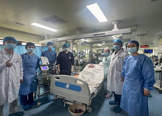 冯英博士一边作技术指导,一边安排救护车火速赶往安陆。中南医院ECMO团队到达现场后,两院的重症医学团队通力协作,快速完成经皮股动静脉穿刺、反向灌注管置入、管路连接等一系列操作后,启动ECMO。随着ECMO的运转,严先生的血压、心率、氧合渐趋稳定,随后,被转运至武汉大学中南医院ICU行后续治疗。