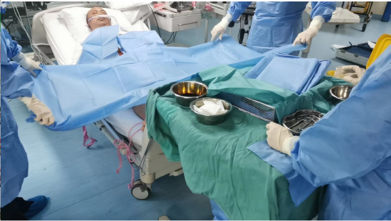 武汉大学中南医院ECMO团队到达现场后,两院的重症医学团队共同协作,快速完成经皮股动静脉穿刺、反向灌注管置入、管路连接等一系列操作后,启动ECMO。随着ECMO的运转,严先生的血压、心率、氧合逐渐趋于稳定,在场医护人员紧绷的神经总算有了些许放松。随后,安陆普爱医院第一时间将患者转运至武汉大学中南医院ICU行后续治疗。
