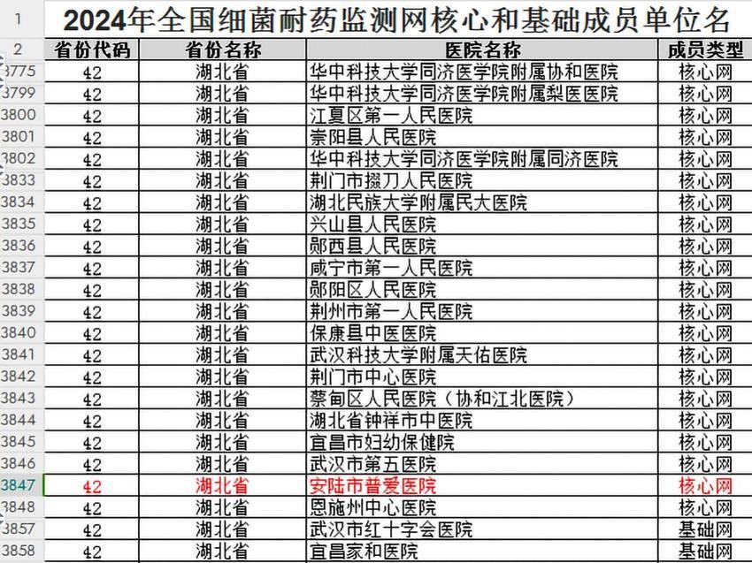 12月16日,经全国细菌耐药监测质控中心审查,安陆市普爱医院被确定为全国细菌耐药监测网核心成员单位。