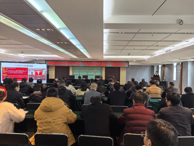 2月17日,安陆市“百场理论进基层”宣讲活动在普爱医院门诊九楼大会议室开展。市委党校教师徐银金做《新征程上进一步全面深化改革的行动纲领——学习贯彻党的二十届三中全会精神》主题宣讲。医院领导班子、全体党员90余人聆听讲座。