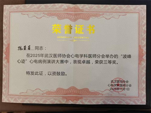 11月1日,在2025年武汉医师协会心电学科医师分会主办的“波峰心迹”心电病例演讲大赛中,该院心电学科陈芳芳医师从众多精英选手中脱颖而出,最终荣获三等奖。该赛事是“第26届武汉亚心心脏病大会暨香港亚洲医疗集团学术会议”(WHACC 2025)的核心活动之一,而WHACC 2025由香港亚洲医疗集团旗下多所国内外知名医院及专业机构联合举办。学术规格与行业影响力备受认可。比赛中,陈芳芳医师以《智能的“休眠”:MVP功能的是与非》为题,结合典型临床病例,深入浅出剖析现代心电设备智能功能在诊断中的优势与局限,报告内容详实、见解独到,展现出深厚的心电学科专业素养。