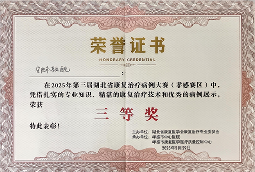 此次获奖意义重大。一方面,它是科室发展的重要里程碑,使科室从区域服务迈向更广阔的专业竞技舞台,提升了在孝感地区乃至湖北省康复领域的知名度,为吸引优质医疗资源和开展学术交流合作创造了新机遇,推动科室技术和服务水平更上一层楼。另一方面,团队专业能力得到省级专业委员会的高度认可,这既是对现有成员技术水平的肯定,也激励全体人员不断钻研业务,形成积极向上的发展氛围。