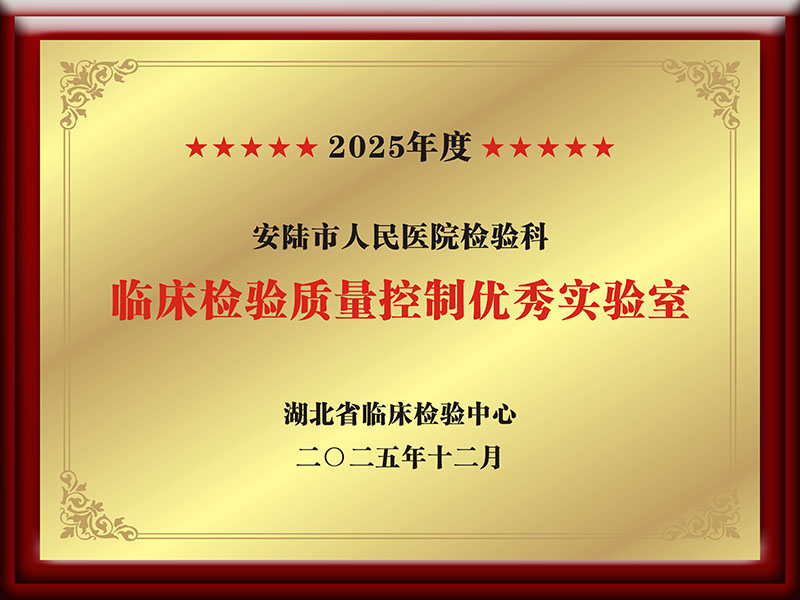 检验科构建了全流程质量管理体系,覆盖检验各环节。日常严守室内质控,长期参与国家级、省级室间质评,多次被湖北省卫生厅授予优秀检验科,被湖北省临床检验中心授予临床检验质量控制优秀实验室(2023、2025),2025年被湖北省临床检验中心授予临床检验质量管理优秀单位,保证了检验结果具备公信力与可比性。