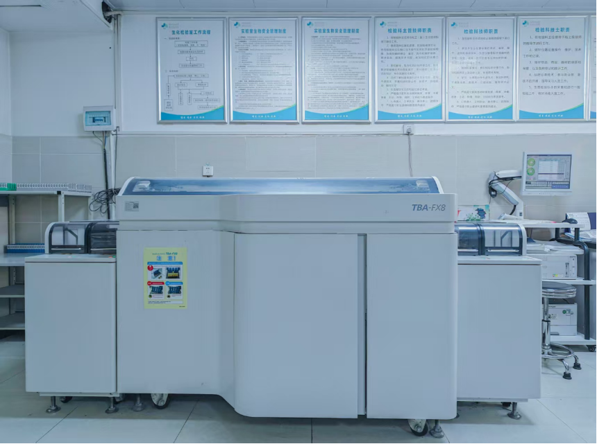 生化免疫室配备了佳能TBA FX8生化分析仪、新产业MAGLUMIX8及安图A2000PLUS化学发光分析仪等先进设备,可全面开展肝肾功能、血糖血脂、风湿类、心肌标志物、肿瘤标志物、甲状腺功能、性激素、内分泌激素、叶酸、维生素B12、感染性疾病及各类血清学抗体等检测,这些检测覆盖机体代谢与器官功能、肿瘤筛查、内分泌诊断以及感染与免疫性疾病监测。